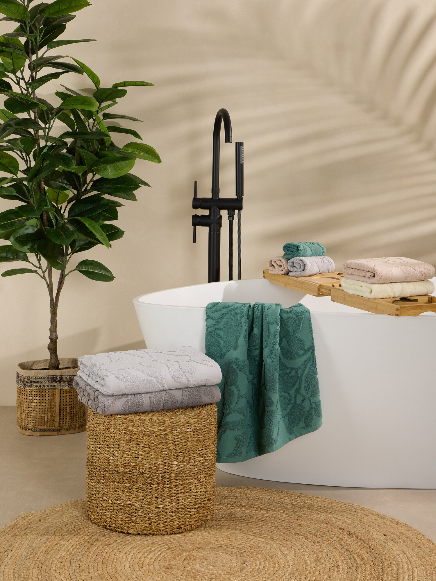 Купить Полотенце банное махровое от бренда Arya home 70х140 Leaves светло-серое с доставкой по всей России.