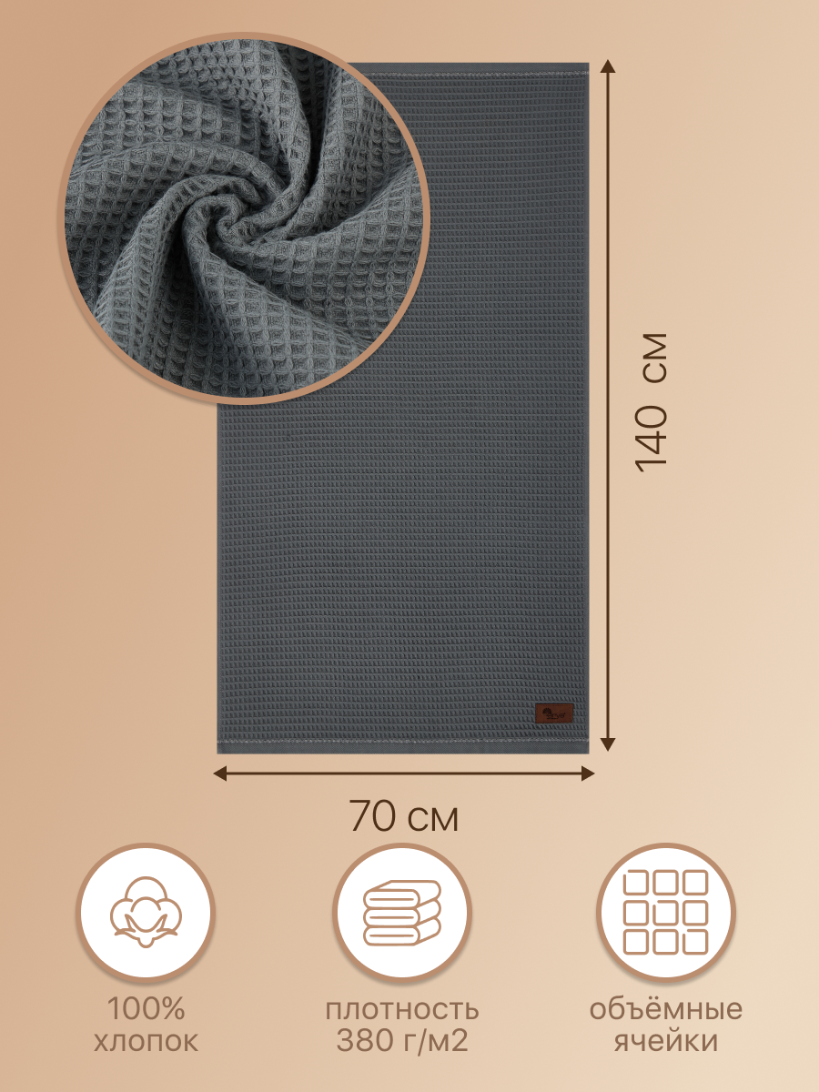 Полотенце банное вафельное от бренда Arya home 70х140 Rob серое