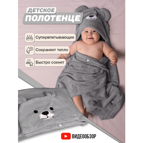 Полотенце банное для новорожденного детское с капюшоном - подарите вашему малышу уют и комфорт с нашим полотенцем размером 70х140 см. Это большое полотенце идеально подходит как для новорожденных малышей, так и для детей постарше. Наши полотенца изготовлены из высококачественной микрофибры, которая отлично впитывает влагу и быстро сохнет, что делает их идеальными после душа или ванны. Каждое полотенце для тела и рук в наборе имеет капюшон, который защитит голову и волосы вашего малыша от холода и добавит элемент веселья с рисунком в виде медвежонка. За счет кнопок полотенце с уголком можно носить как халат пончо для девочки и для мальчика. Наши подарочные комплекты полотенца 70 на 140 доступны в разных расцветках, что делает их отличным выбором для подарка на любое торжество. Каждое изделие выполнено из гипоаллергенных материалов микроволокна и заботится о нежной коже малыша. Они не только мягкие и легкие, но и удерживают тепло, не сползая при использовании. Выбирайте детские банные полотенца с принтом медведя, которые подарят радость и заботу вашим детям в уголке ванной или во время семейных походов на баню. Порадуйте своего малыша качественными и стильными легкими полотенцами, которые станут незаменимыми помощниками в каждом доме!