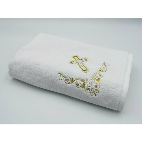 Большое, мягкое, белоснежное полотенце для Крещения с вышивкой символизирует чистоту обновленного после совершения таинства человека. Полотенце с орнаментом дополнительно украшено вышивкой креста декоративными нитями под серебро. Полотенце с петелькой для подвешивания. Легкое и пушистое банное полотенце изготовлено из мягкой ворсистой микрофибры. Яркие цвета сохраняются до 5 лет даже при ежедневных стирках. Впитывает влаги весом больше чем само полотенце. Быстро сохнет не требует глажки, компактное и лёгкое приятное на ощупь. Выглядит оригинально и придаёт неповторимый уют и тепло. Надолго остается мягким и нежным. Ткань хорошо выдерживает многократную стирку, не линяет, долго сохраняет яркие цвета.