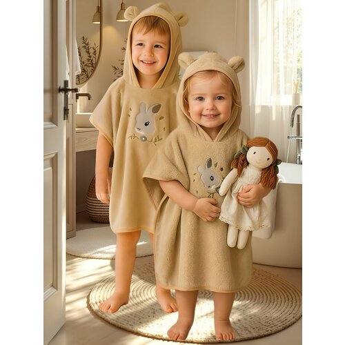 - Удобство использования: Пончо-дизайн облегчает процесс одевания и снимает необходимость заворачивать ребенка в обычное полотенце.