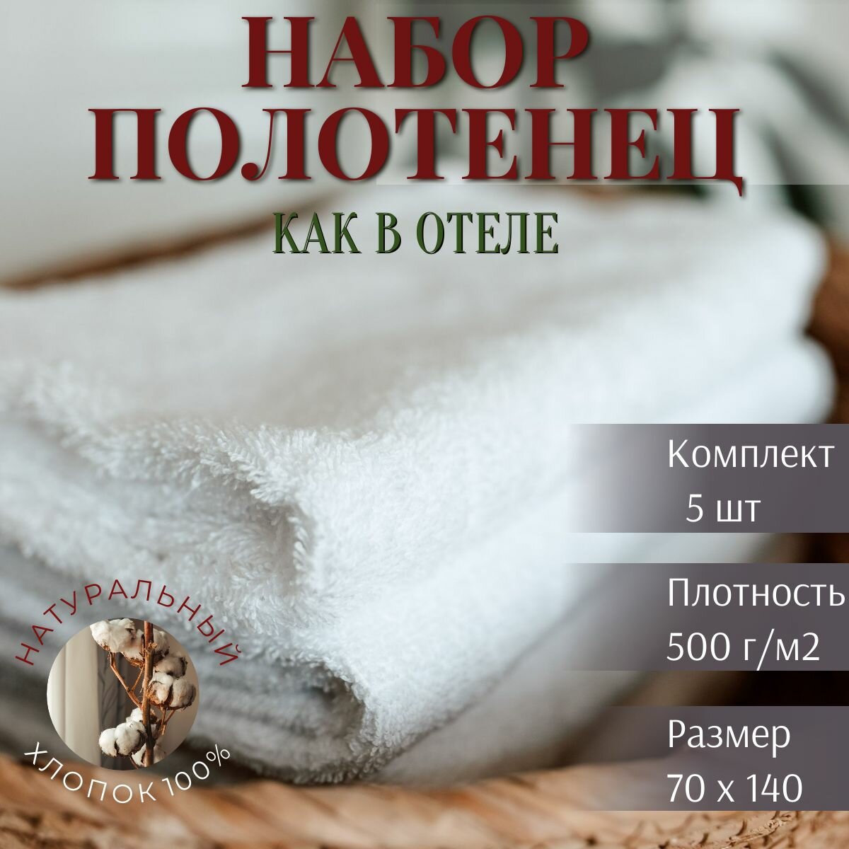 Представляем вашему вниманию комплект из пяти белоснежных махровых полотенец размером 70x140 см, идеально подходящих как для использования в гостиницах и отелях, так и для домашнего уюта. Эти высококачественные изделия, созданные с учетом самых взыскательных стандартов, обеспечат вам максимальный комфорт, будь то после расслабляющей банной процедуры, освежающего плавания в бассейне или сеанса в SPA. Махровая ткань обладает замечательной впитывающей способностью, позволяя быстро и эффективно удалять влагу с вашего тела, создавая ощущение свежести и комфорта. Полотенца из набора подходят для частого использования и многократных стирок, сохраняя свою мягкость и белоснежную чистоту на протяжении длительного времени. Они станут отличным дополнением к вашему домашнему текстилю, добавляя нотку роскоши и элегантности в любую ванную комнату. Кроме того, минималистичный дизайн и универсальный белый цвет прекрасно впишутся в любой интерьер, подчеркивая его стиль и гармонию. Эти полотенца также могут стать великолепным выбором для вашего бизнеса, демонстрируя заботу о комфорте и благополучии ваших гостей. Обладая всеми необходимыми качествами, такими как высокопрочная махровая ткань, оптимальный размер и превосходная впитываемость, полотенца из набора обеспечат вам ощущение уюта и комфорта в любом месте и при любых обстоятельствах.