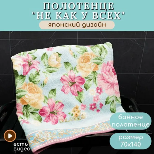 Купить Полотенце для ванной махровое банное большое, велюровое BOLANGDE, 100% хлопок, рисунок цветы, Япония Пионы 70х140, голубой 1 шт с доставкой по всей России.