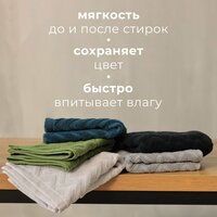 Махровая фактура ткани обеспечивает приятные тактильные ощущения и быстрое впитывание влаги. Плотность ткани составляет 450 гр/м2, что гарантирует прочность и долговечность изделия.