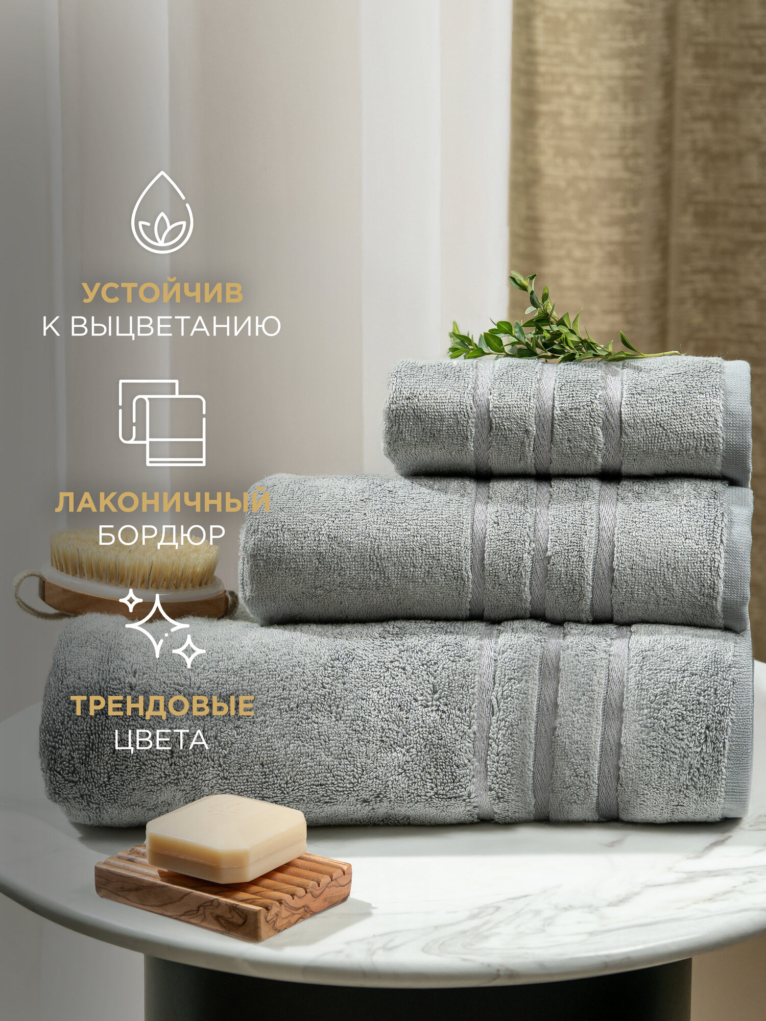Полотенце махровое из смеси натурального бамбука и премиального хлопка повышенной плотности станет приятным завершением водных процедур. Полотенце махровое банное хорошо впитывает влагу, а плотный и густой слой махровых петель 600 гр/м² делает банное полотенце приятным на ощупь для лица и тела. Бамбук обладает уникальным свойством отталкивать от себя грязь, имеет высокую износостойкость и антибактериальные свойства. Выполнено в строгом сером цвете с плотным бортиком по периметру, а благодаря высокому качеству наше банное полотенце махровое сохранит цвет и форму даже после многочисленных стирок. Полотенце банное махровое может быть использовано для волос, мягкого массажа и отшелушивания кожи. Плотный, но нежный ворс полотенца поможет стимулировать кровообращение и удалить отмершие клетки кожи, делая ее особенно гладкой и мягкой. Избегайте слишком сильного давления на особенно чувствительных участках кожи. Для достижения наилучших результатов пользуйтесь деликатными движениями. В комплект входит полотенце банное махровое 70х140. Состав: 50% хлопок 50% бамбук.