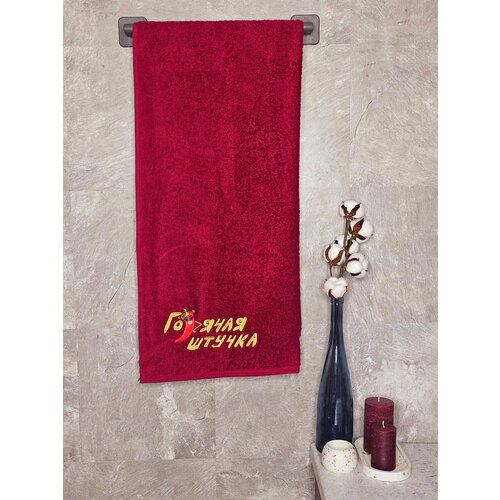 Полотенце махровое BIO-TEXTILES 70*140 с вышивкой горячая штучка бордовое для женщины девушке маме подруге сестре банное в подарок 100% хлопок подарок на 14 февраля Святое Валентина для парочек