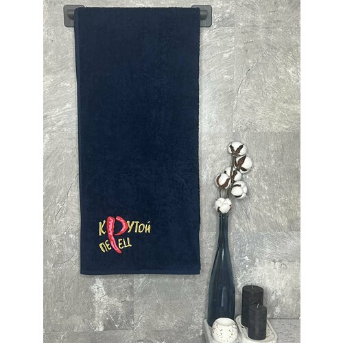 Полотенце махровое BIO-TEXTILES 70*140 с вышивкой крутой перец темно-синее для мужчины мужу папе брату сыну банное в подарок 100% хлопок подарок на 14 февраля Святое Валентина для парочек