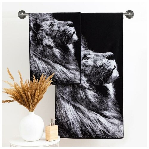 Полотенце махровое Этель ЧБ "Лев" 70х130 см.