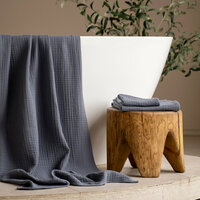 Темно-синий цвет полотенца придаст изысканный и стильный вид вашей ванной комнате, а его размеры 50х90 см позволят использовать полотенце для ног или рук.