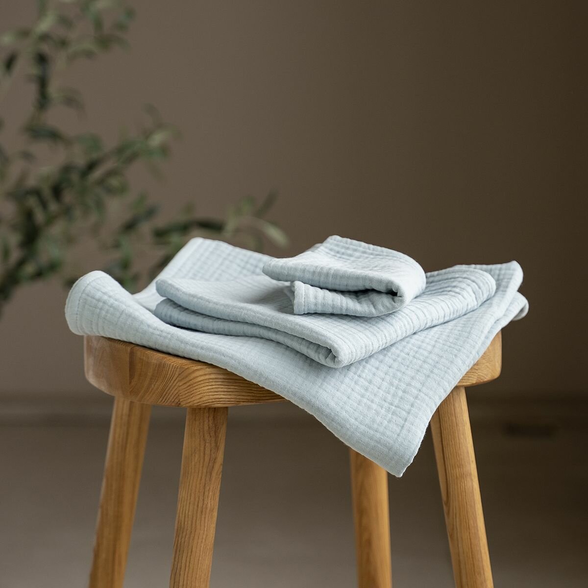 Полотенце выполнено из четырехслойного муслина, который хорошо впитывает влагу и быстро сохнет. Это обеспечивает комфорт и мягкость при использовании.