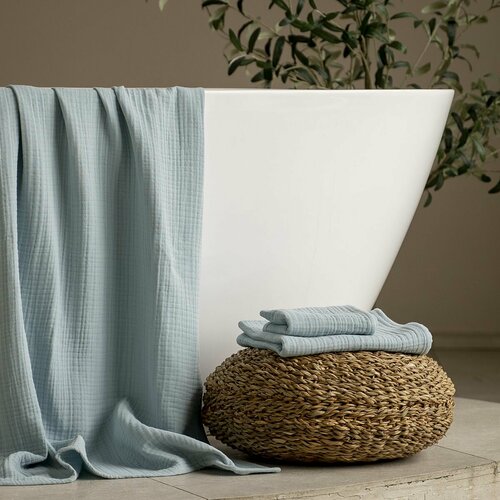 Муслиновая фактура ткани полотенца обеспечивает быстрое впитывание влаги и быстрое высыхание, делая его особенно удобным для использования после душа или ванны. Размер полотенца 70х140 см позволяет комфортно вытираться и обернуть его вокруг тела.