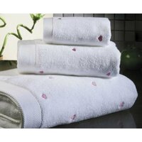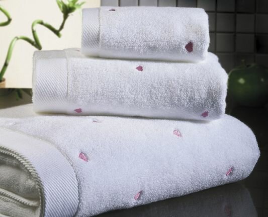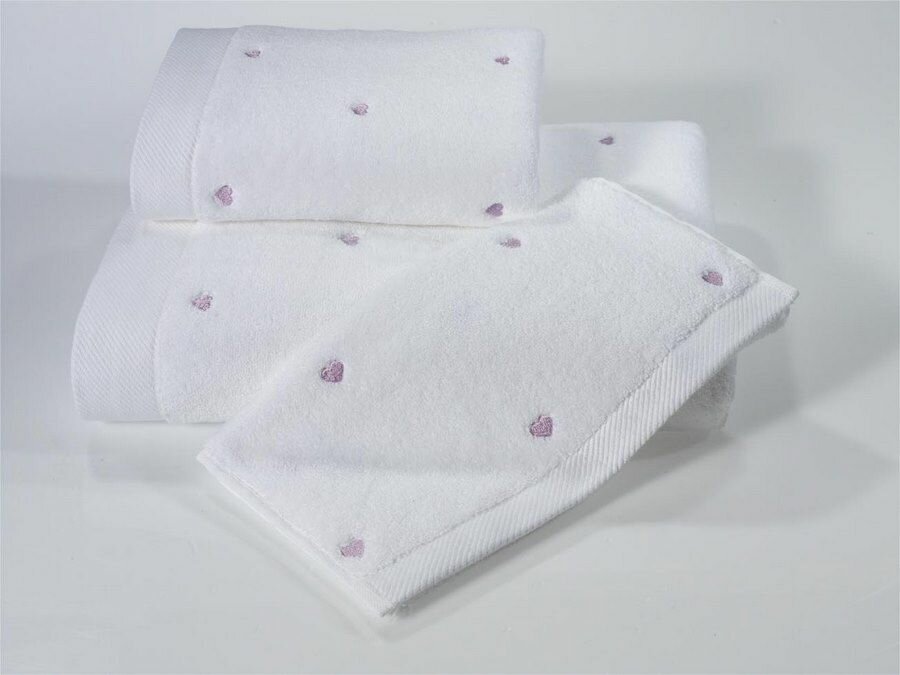 Купить Полотенце сердце Soft Cotton LOVE любовь (белое с фиолетовыми сердечками) 75х150 с доставкой по всей России.