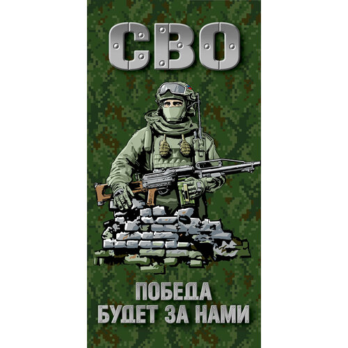 Полотенце "Победа будет за нами" СВО. Махровое полотенце с авторским принтом для знакомых и друзей. Незаменимый подарок для любого праздника и памятной даты. Полотенце является неотъемлемой частью быта, необходимым атрибутом личной гигиены. Хлопковая ткань является экологически чистым материалом. Хлопковое полотенце пропускает воздух и впитывает влагу, практично в быту, долговечно в использовании. Полотенце с ворсистой поверхностью, состоящей из мелких петель. Обладает повышенной прочностью в использовании, мягкое на ощупь. Многочисленные петельки на махровой ткани способны абсорбировать большое количество воды. Махровое полотенце отлично впитывает влагу с тела человека.