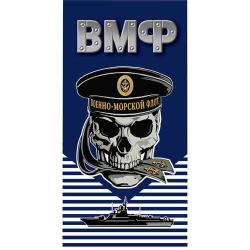 Полотенце ВМФ с черепом. Махровое полотенце с авторским принтом для знакомых и друзей. Незаменимый подарок для любого праздника и памятной даты. Полотенце является неотъемлемой частью быта, необходимым атрибутом личной гигиены. Хлопковая ткань является экологически чистым материалом. Хлопковое полотенце пропускает воздух и впитывает влагу, практично в быту, долговечно в использовании. Полотенце с ворсистой поверхностью, состоящей из мелких петель. Обладает повышенной прочностью в использовании, мягкое на ощупь. Многочисленные петельки на махровой ткани способны абсорбировать большое количество воды. Махровое полотенце отлично впитывает влагу с тела человека.