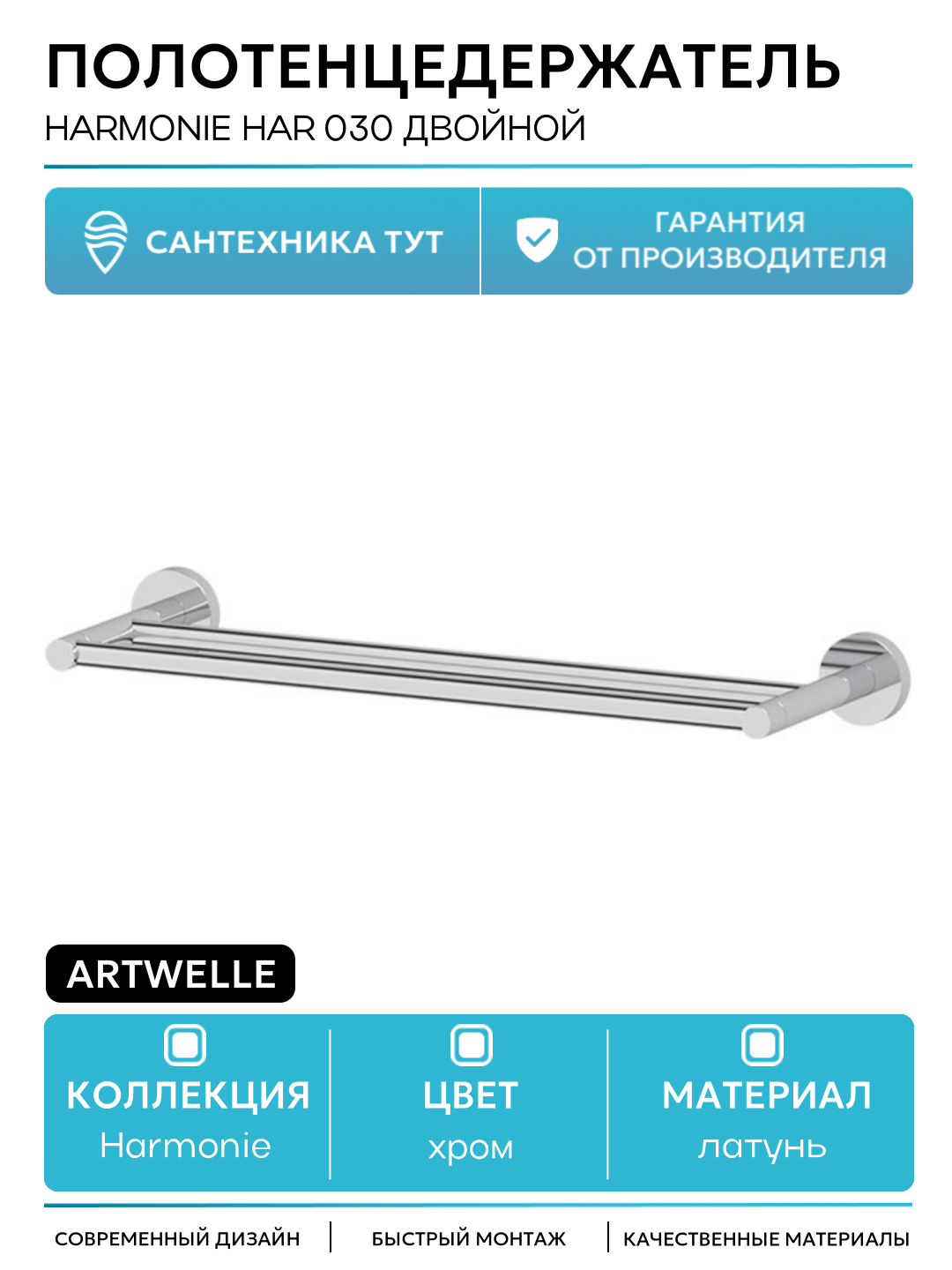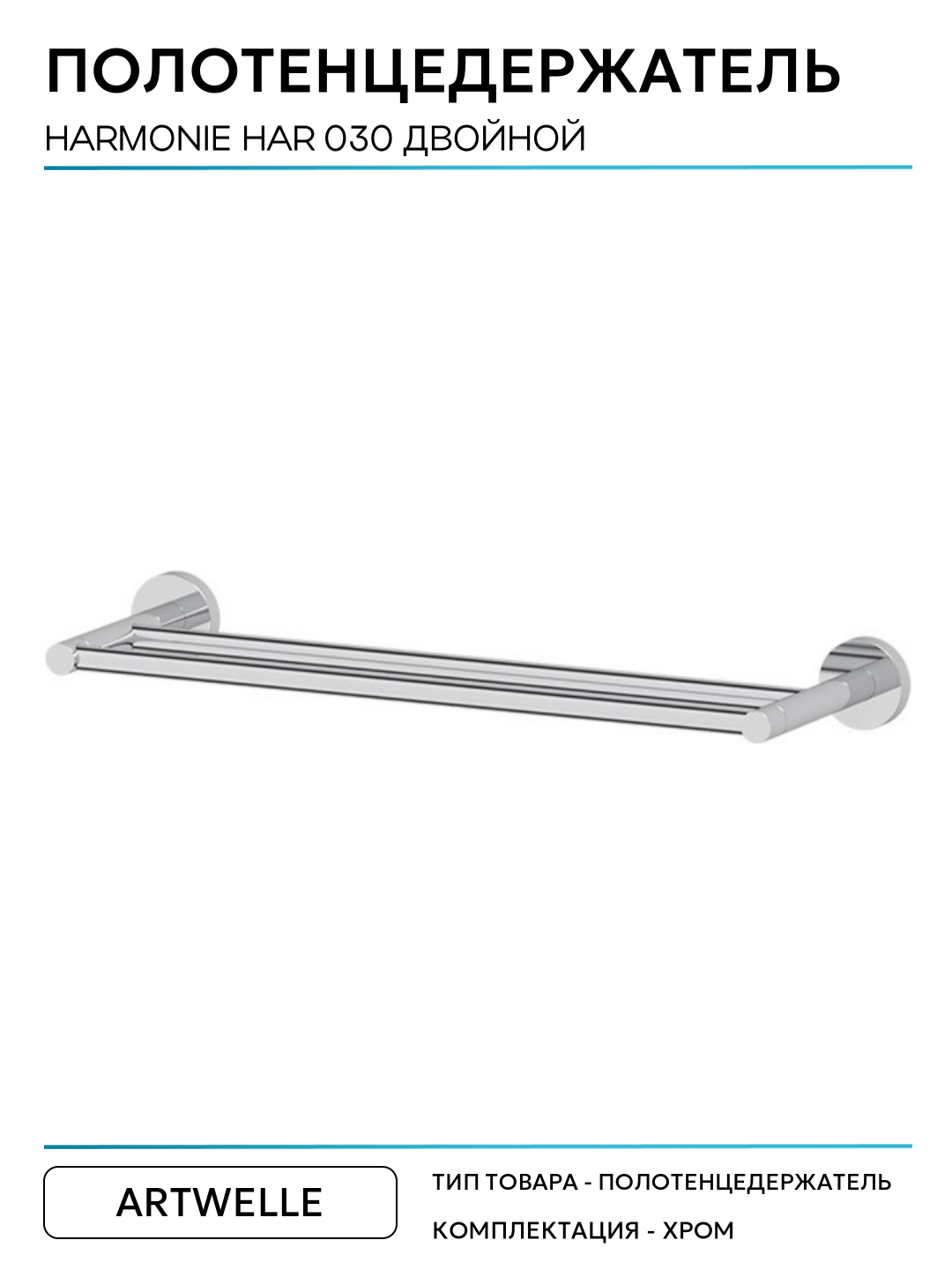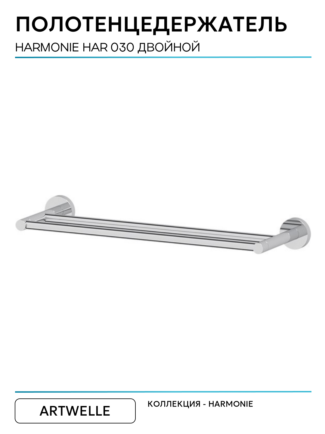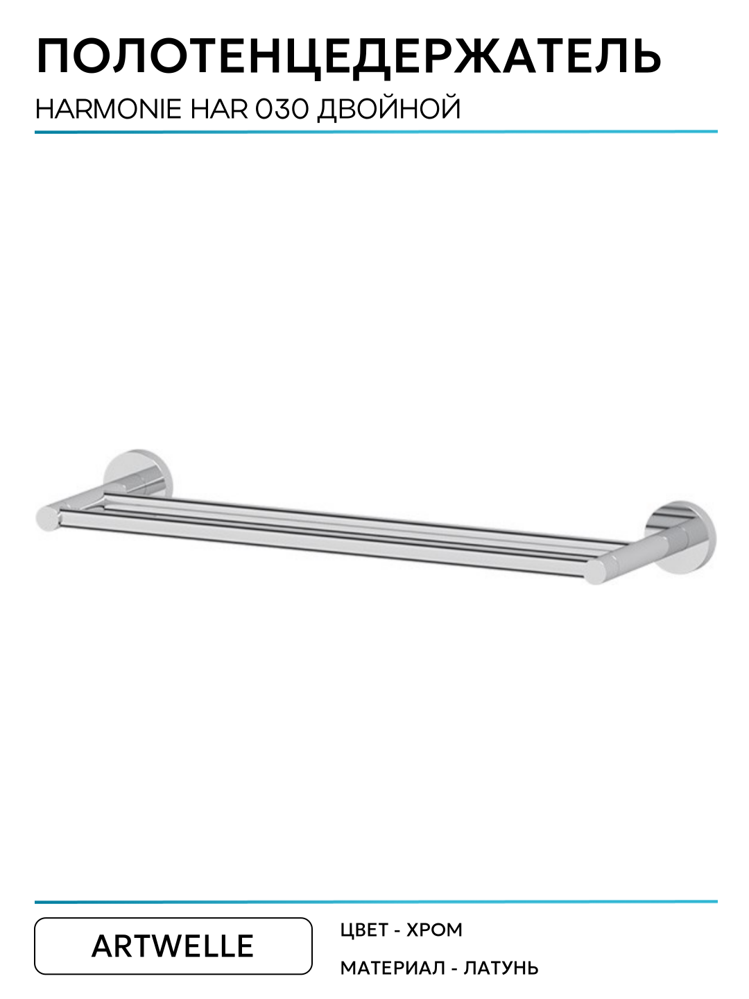 Полотенцедержатель Artwelle Harmonie HAR 030 двойной хром латунь на стену станет отличным дополнением к вашей ванной комнате или туалету, обеспечивая комфорт и порядок.