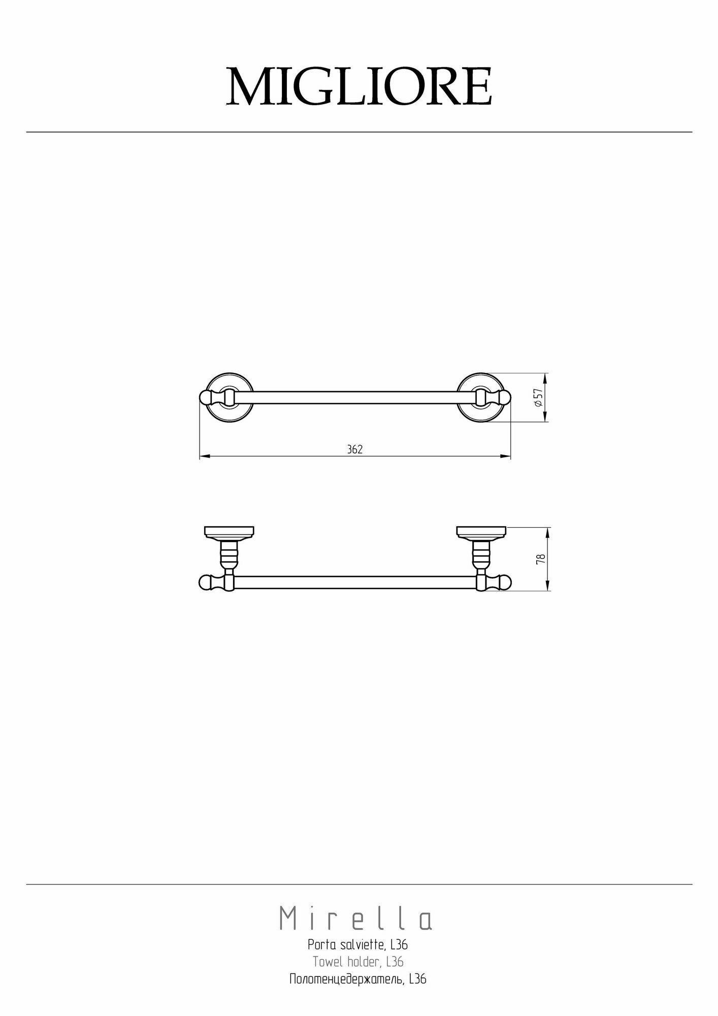 • Внимание: золотое покрытие очень деликатное и для ухода рекомендуется использовать чистящее средство бренда MIGLIORE для смесителей и аксессуаров с деликатными покрытиями бронза, золото, медь и протирать мягкой ветошью