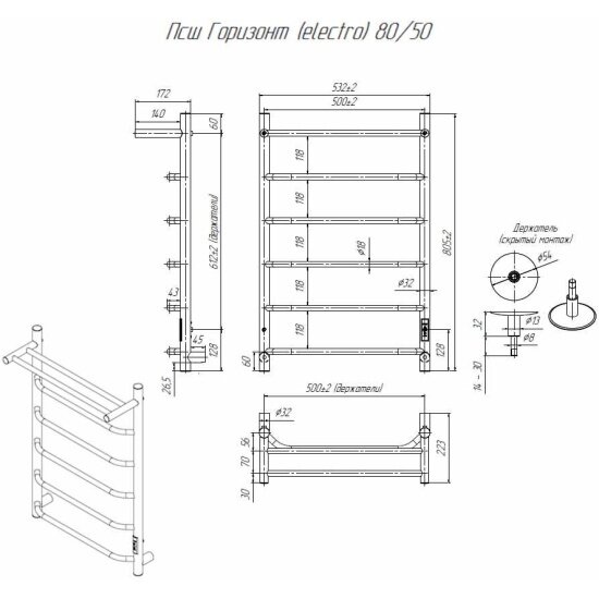 Полотенцесушитель Altasan Горизонт (электро.) 80х50 П (таймер, скр. монтаж, унив. подкл. Черный муар), Альтасан: сравнение цен, характеристики, фото, актуальное наличие и цены.