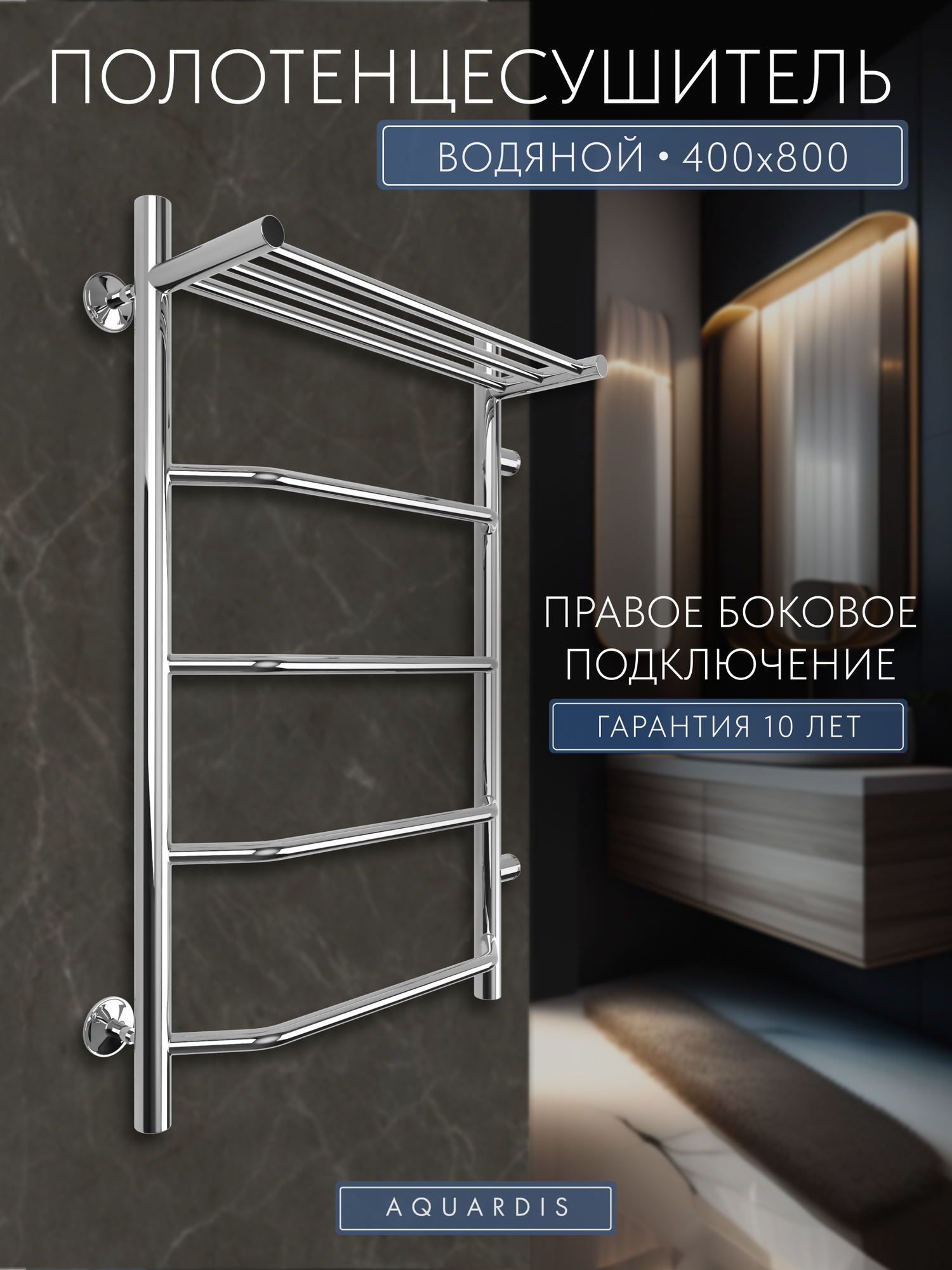 Полотенцесушитель AQUARDIS GALATEYA водяной 400х800 Межсоевое 500мм с полочкой правое боковое подключение: сравнение цен, характеристики, фото, актуальное наличие и цены.