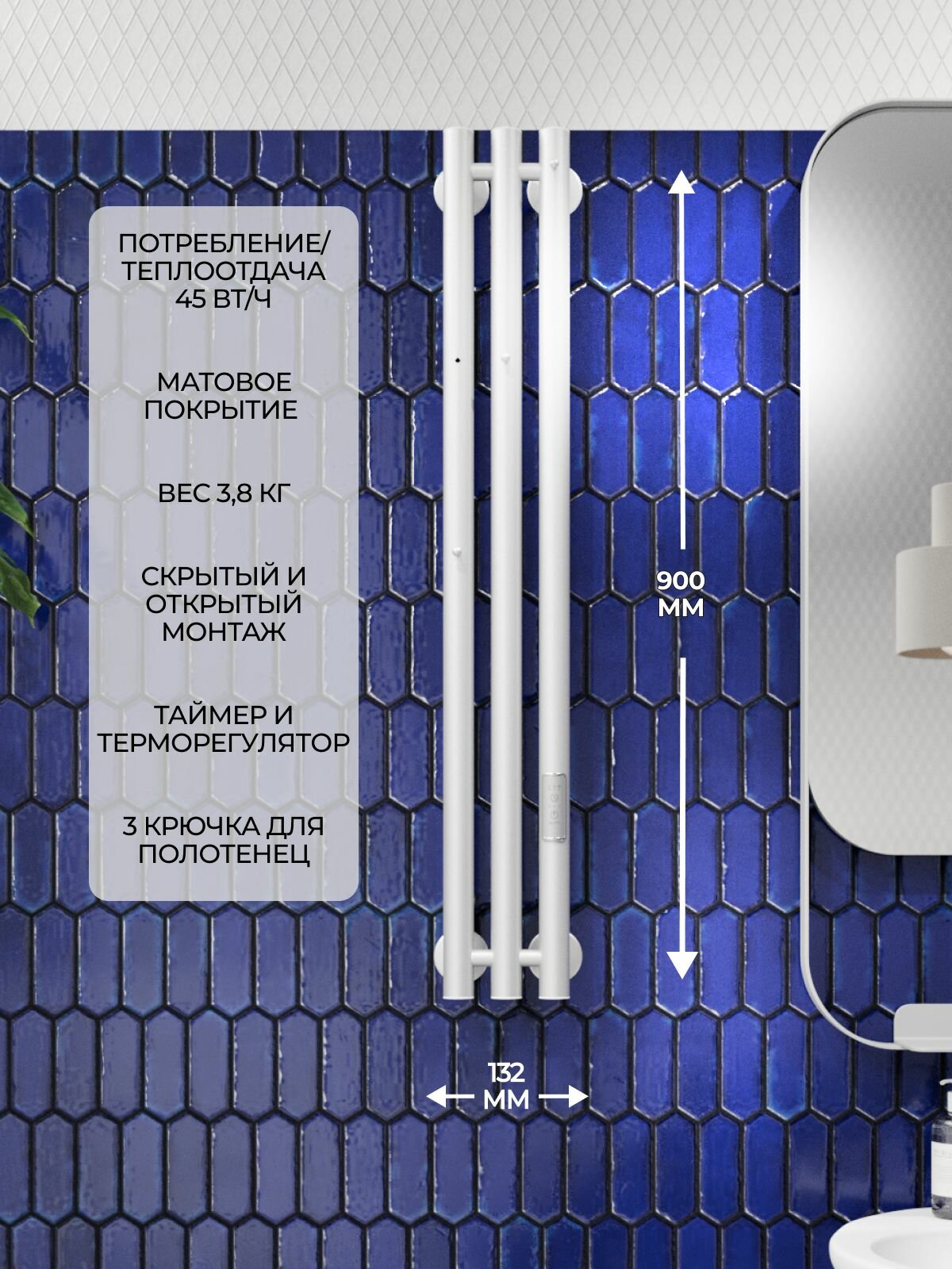 Полотенцесушитель белый электрический вертикальный Marco 3 90 х 13 / скрытый монтаж / правое и левое подключение: сравнение цен, характеристики, фото, актуальное наличие и цены.