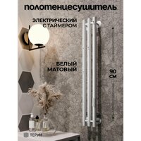 Полотенцесушитель белый электрический вертикальный Marco 3 90 х 13 / скрытый монтаж / правое и левое подключение