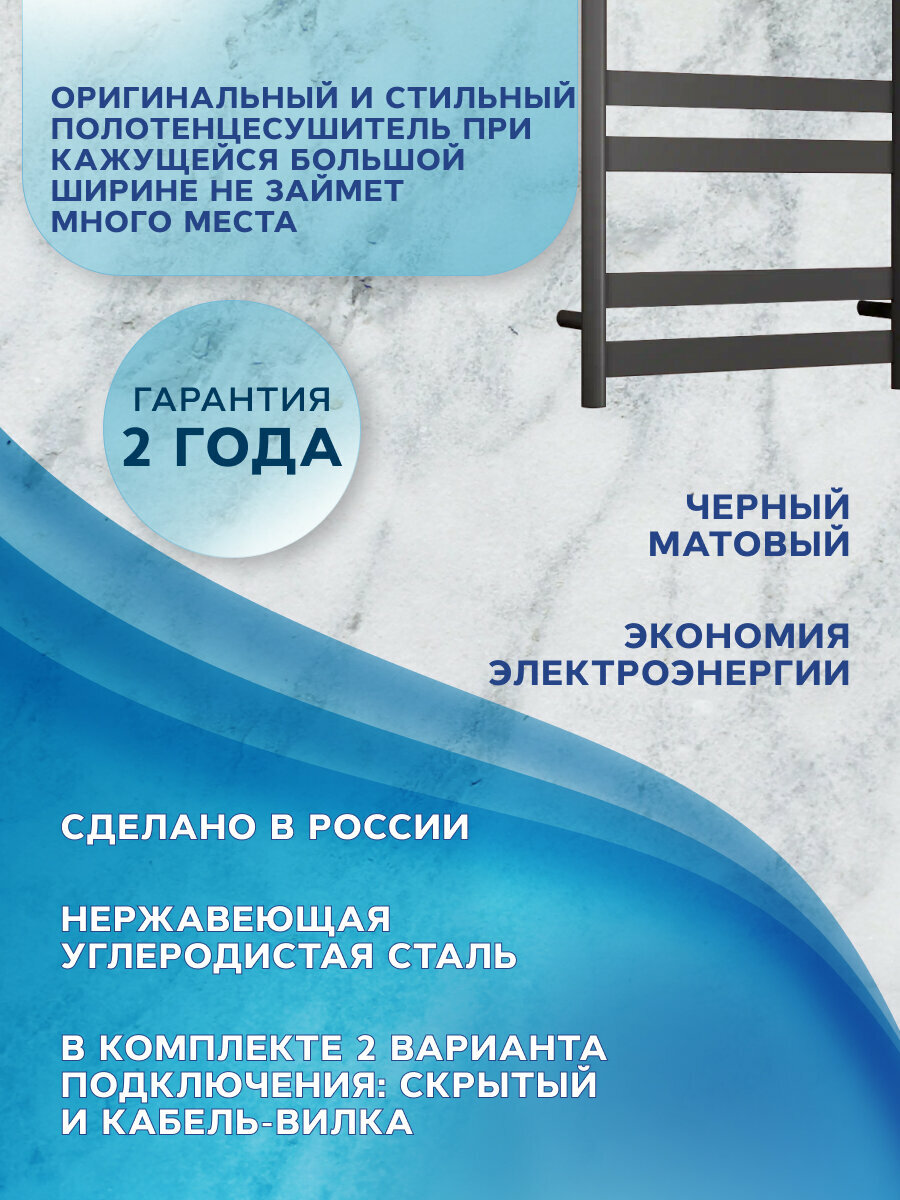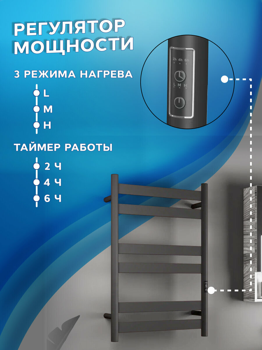 Полотенцесушитель дизайнерский электрический, профильный BAU Mix 50х80, 6 планок, универсальный, черный матовый RAL 9005: сравнение цен, характеристики, фото, актуальное наличие и цены.