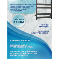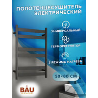 Купить Полотенцесушитель дизайнерский электрический, профильный BAU Mix 50х80, 6 планок, универсальный, черный матовый RAL 9005 с доставкой по всей России.