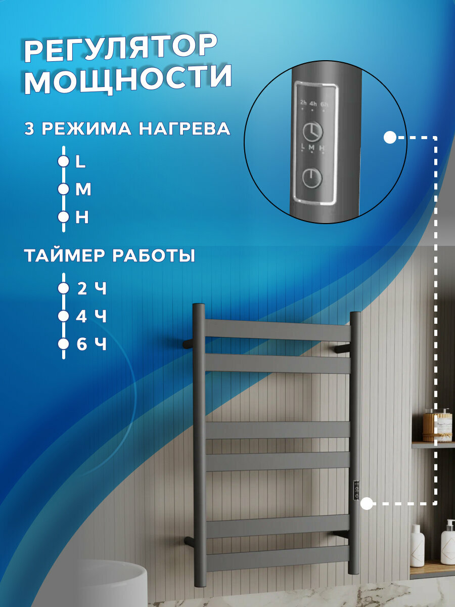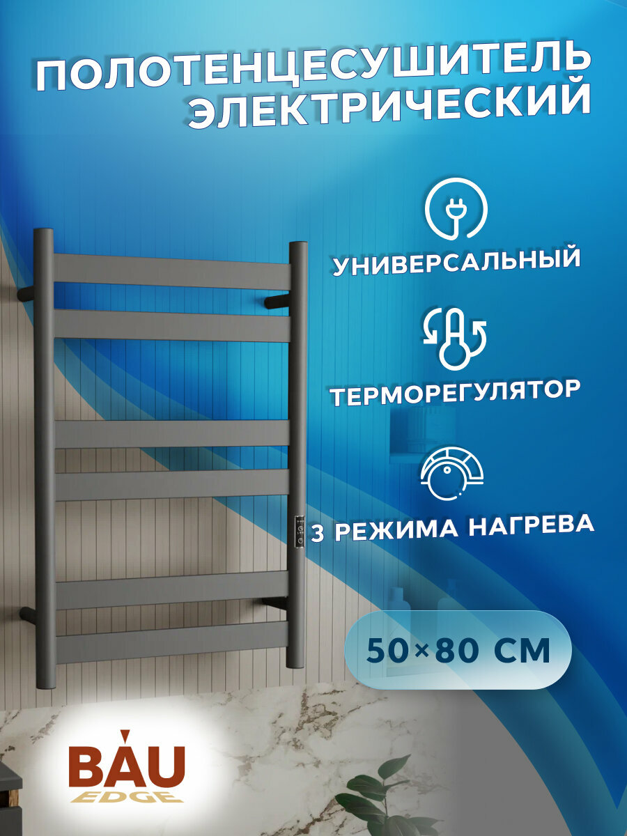 Полотенцесушитель дизайнерский электрический, профильный BAU Mix Gun Grey 50х80, 6 планок, универсальный, темно-серый металлик: сравнение цен, характеристики, фото, актуальное наличие и цены.