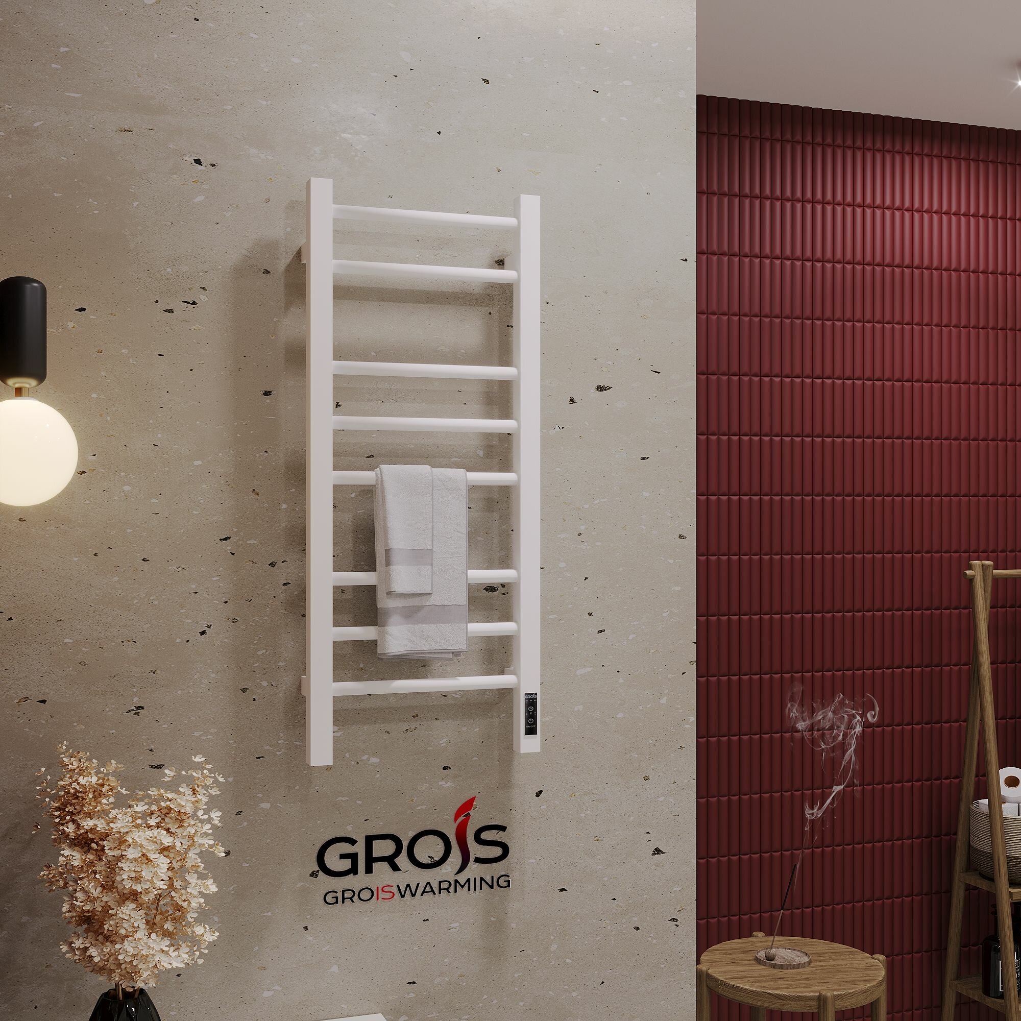 Купить Полотенцесушитель электрический с терморегулятором GROIS «Nex» GR-112 400*800 / белый матовый с таймером с доставкой по всей России.
