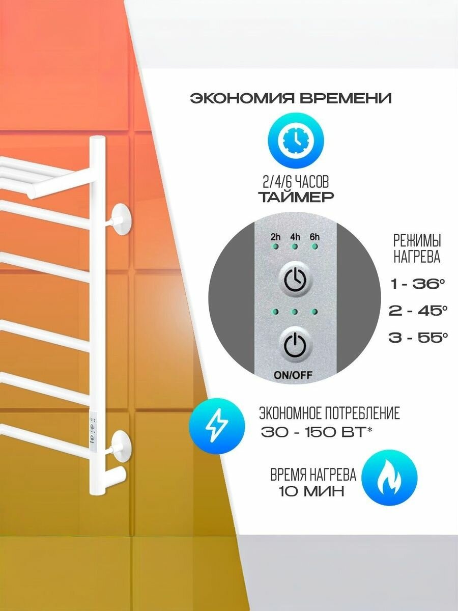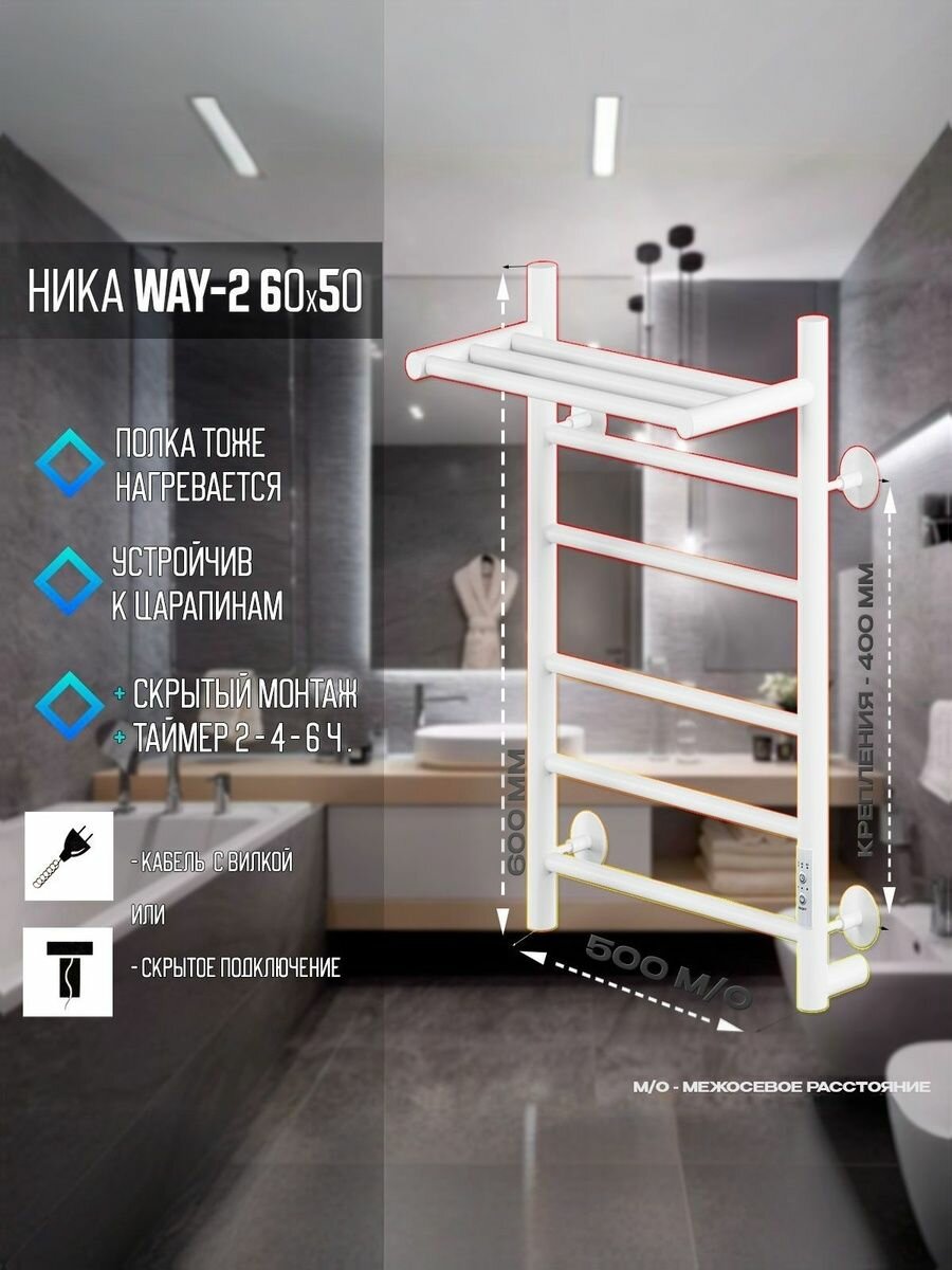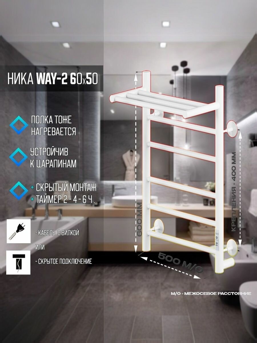 Полотенцесушитель электрический WAY-2 600мм 400мм с полкой белый матовый: сравнение цен, характеристики, фото, актуальное наличие и цены.