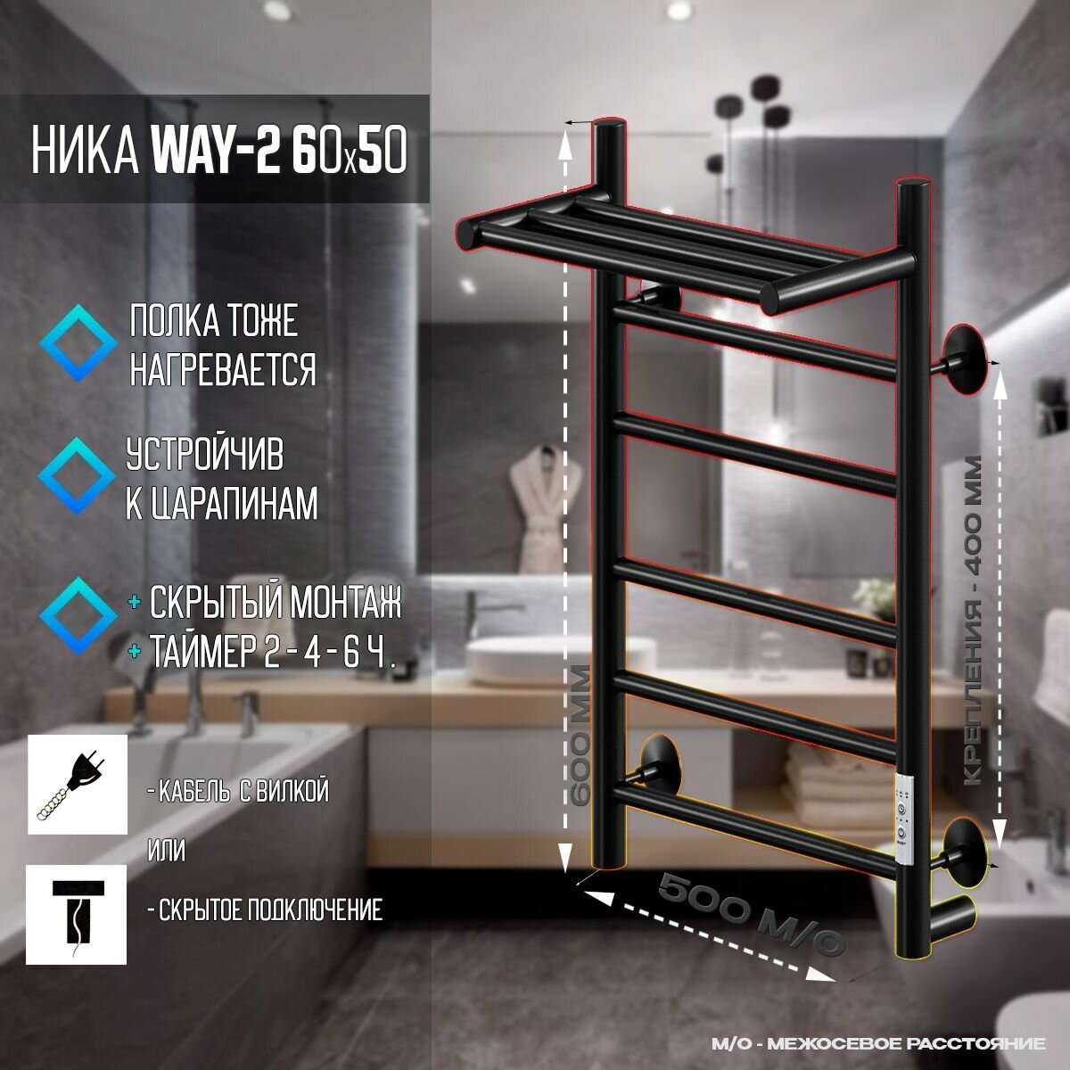 Полотенцесушитель электрический Way-2 с терморегулятором и таймером для ванной - идеальное решение, которое обеспечит вам комфорт и уют в ванной комнате. Этот продукт является моделью высокого качества от российского производителя Ника, который гарантирует надежность и долговечность изделия на протяжении 2 лет.У полотенцесушителя Way-2 есть ряд превосходных характеристик, которые обеспечивают его эффективную работу. Гибкий сухой ТЭН обеспечивает равномерное распределение тепла по всей поверхности, что позволяет быстро и эффективно прогреть ваши полотенца. Вы также можете легко регулировать температуру и время нагрева в соответствии с вашими предпочтениями и потребностями.