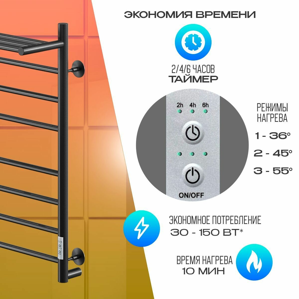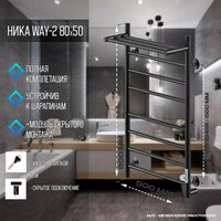 Полотенцесушитель НИКА WAY-2 800мм 500мм с полкой черный матовый: сравнение цен, характеристики, фото, актуальное наличие и цены.