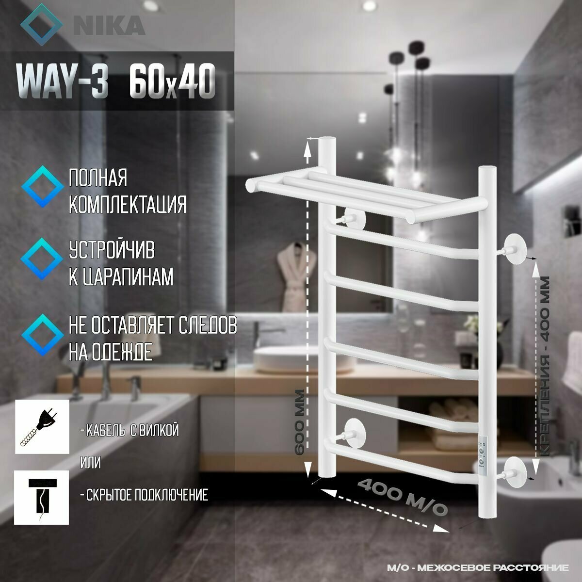 | Подключение | скрытое электрическое соединение, электропровод с вилкой |