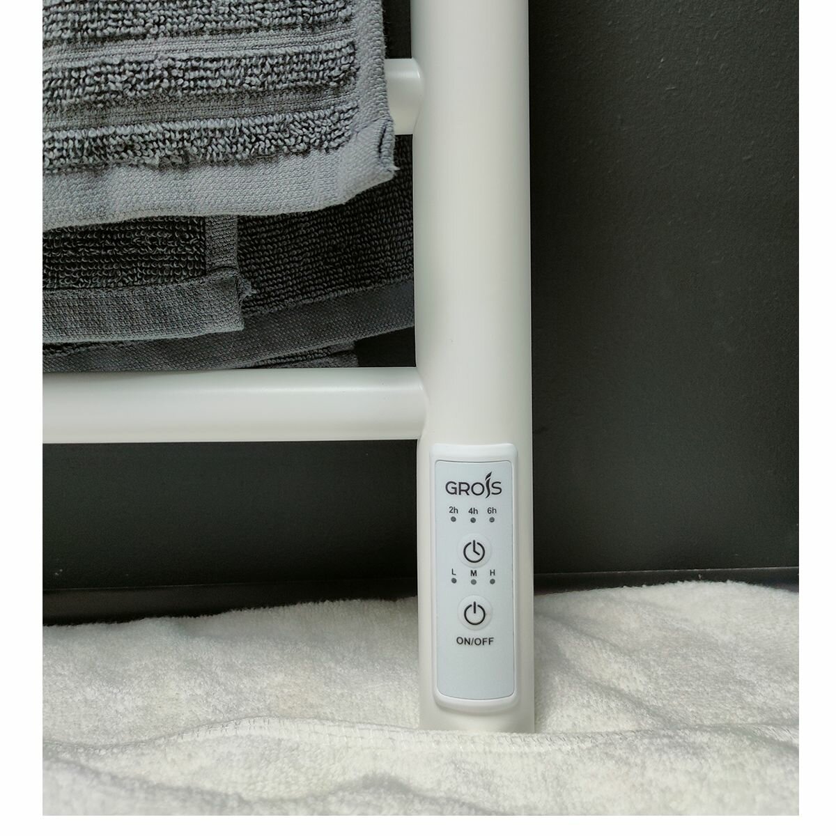 Полотенцесушители «GROIS» изготовлены из углеродистой стали с использованием профильных труб квадратного, прямоугольного и круглого сечения. Изделия имеют нагревательный элемент кабельного типа с регулировкой времени работы и мощности нагрева. Все изделия окрашиваются порошковой эмалью черного или белого цвета с приятной матовой фактурой, что обеспечивает антикоррозийные свойства и современный внешний вид. Электрические полотенцесушители имеют высокую степень теплоотдачи, могут выступать в роли нагревающего дополнительного элемента в вашей комнате, красивый и стильный дизайн электрического полотенцесушителя будет гармонировать с мебелью вашего пространства, добавлять стилистику ванной комнаты.