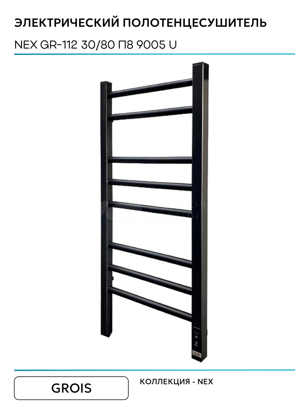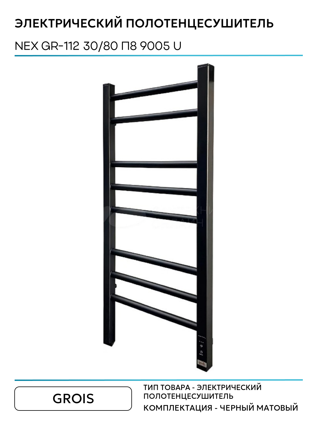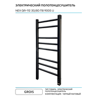 Электрический полотенцесушитель Grois Nex GR-112 30/80 П8 9005 U Черный матовый нержавеющая сталь: сравнение цен, характеристики, фото, актуальное наличие и цены.