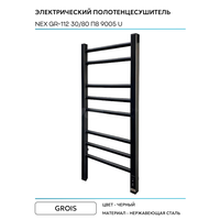 Купить Электрический полотенцесушитель Grois Nex GR-112 30/80 П8 9005 U Черный матовый нержавеющая сталь с доставкой по всей России.