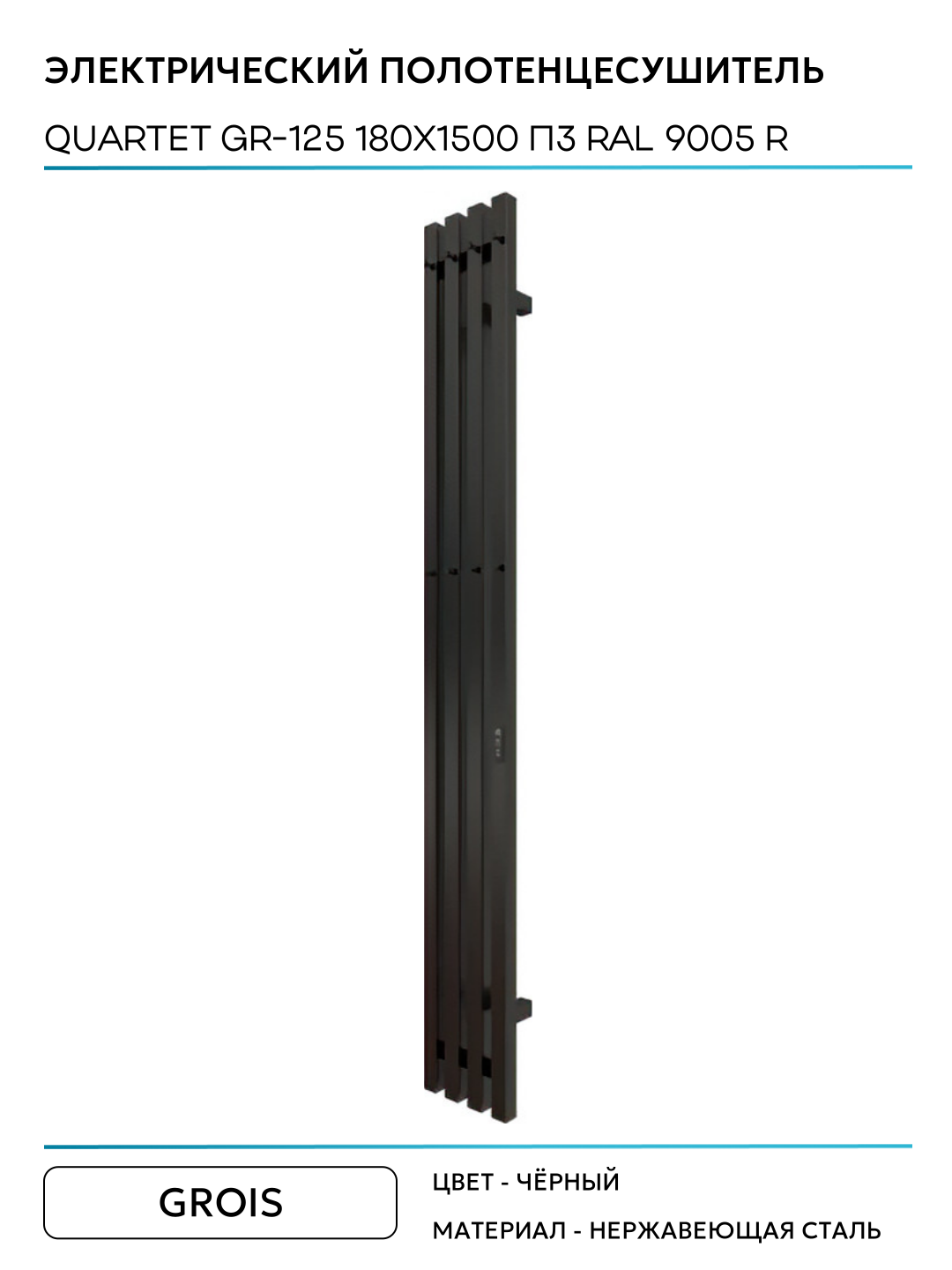 | Дополнительная информация | комплектация: полотенцесушитель в сборе - 1 шт., коробка скрытого монтажа - 1 шт., комплект кронштейнов для крепления к стене - 1 к-т., кабель для подключения к сети 220 В - 1 шт., технический паспорт изделия / гарантийный талон - 1 шт., упаковка - 1 шт.; материал - углеродистая сталь 08ПС; 3 режима таймера: 2, 4, 6 часов; 3 режима терморегулятора: 40, 50, 60 градусов; температура поверхности изделия: 30 - 60 °С ± 5 °С; автоотключение при нагреве до 60-65 °С; степень влагозащиты - IPX4; время нагрева: 20-40 минут |