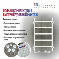 Комплектация: полотенцесушитель , модуль для скрытого монтажа, крепления телескопические для монтажа 4 шт, паспорт с гарантийным талоном, упакован в гофрокороб.
