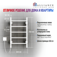 Полотенцесушитель (ШхВ) 400х700 с таймером и терморегулятором, профильный - современный и стильный электроприбор, который можно использовать как для просушки полотенец и вещей, так и как дополнительный источник обогрева. Он быстро нагревается (всего за 20 минут) и имеет низкое энергопотребление, что позволяет существенно сэкономить на электроэнергии.