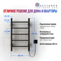 Купить Полотенцесушитель Электрический 400мм 700мм с терморегулятором правый с доставкой по всей России.