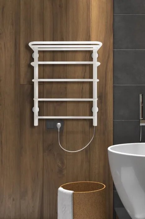 Купить Полотенцесушитель электрический 600х500 INDIGO Hit (LHE60-50WMR) универсальное подключение, с полкой, белый с доставкой по всей России.
