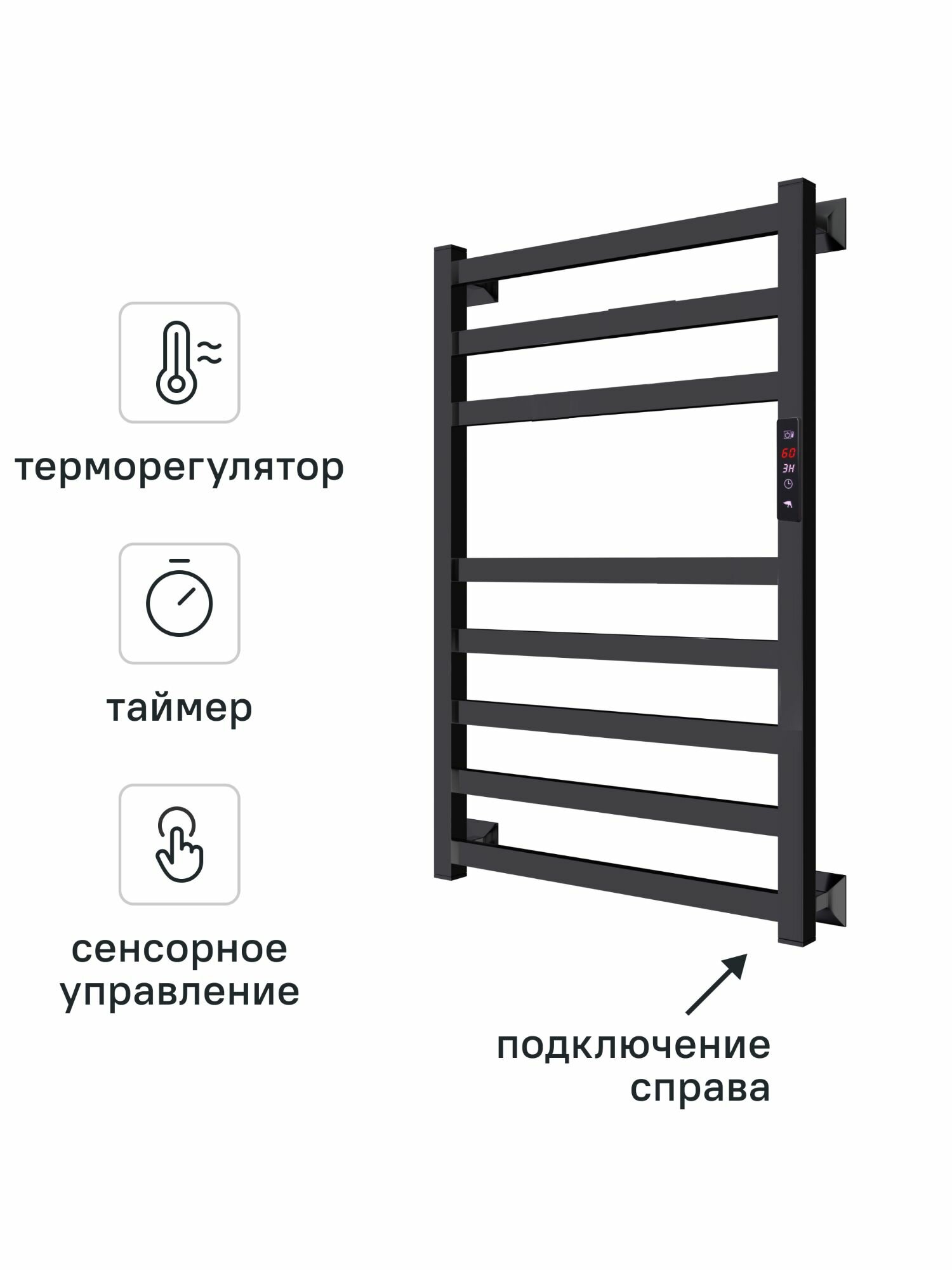 Купить Полотенцесушитель электрический Арго Соло Гранд Квадро 400×800 мм 170 Вт лесенка цвет черный с доставкой по всей России.