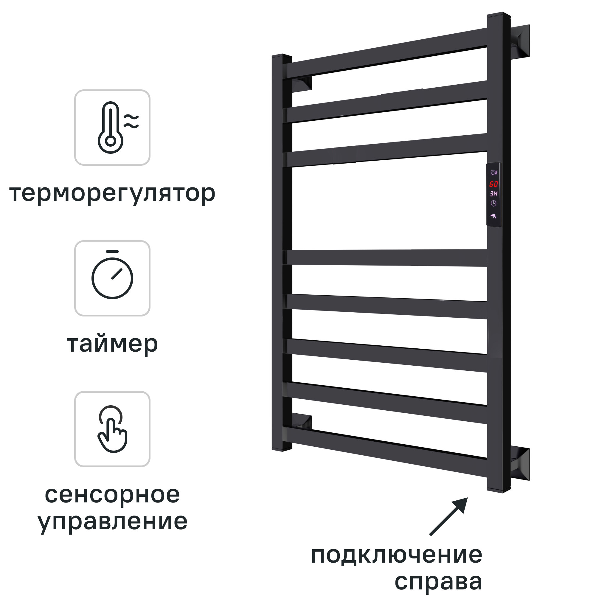 Полотенцесушитель электрический Арго Соло Гранд Квадро 400×800 мм 170 Вт лесенка цвет черный