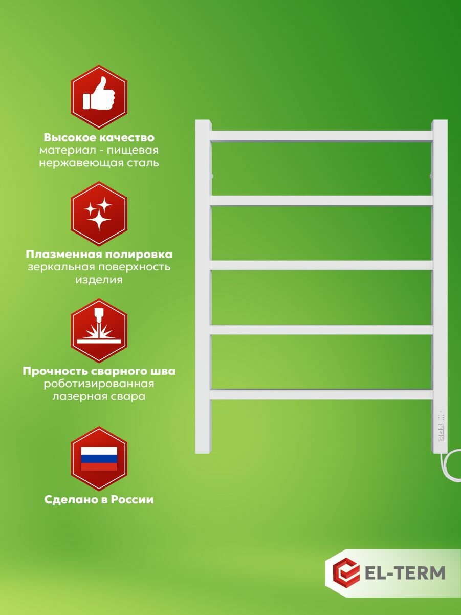 Купить Полотенцесушитель электрический белый EL-TERM (Эл-Терм) рейн 500х700 мм, нержавеющая сталь с доставкой по всей России.