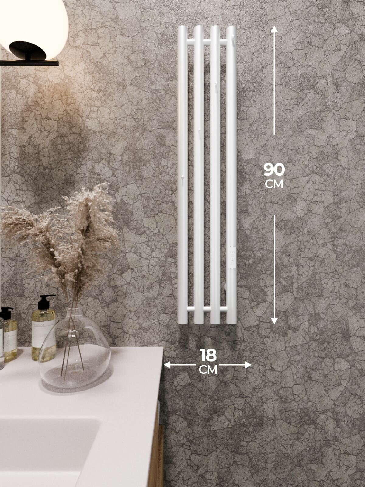 Полотенцесушитель электрический белый вертикальный Marco 4 90 x 18 / скрытый монтаж / правое и левое подключение