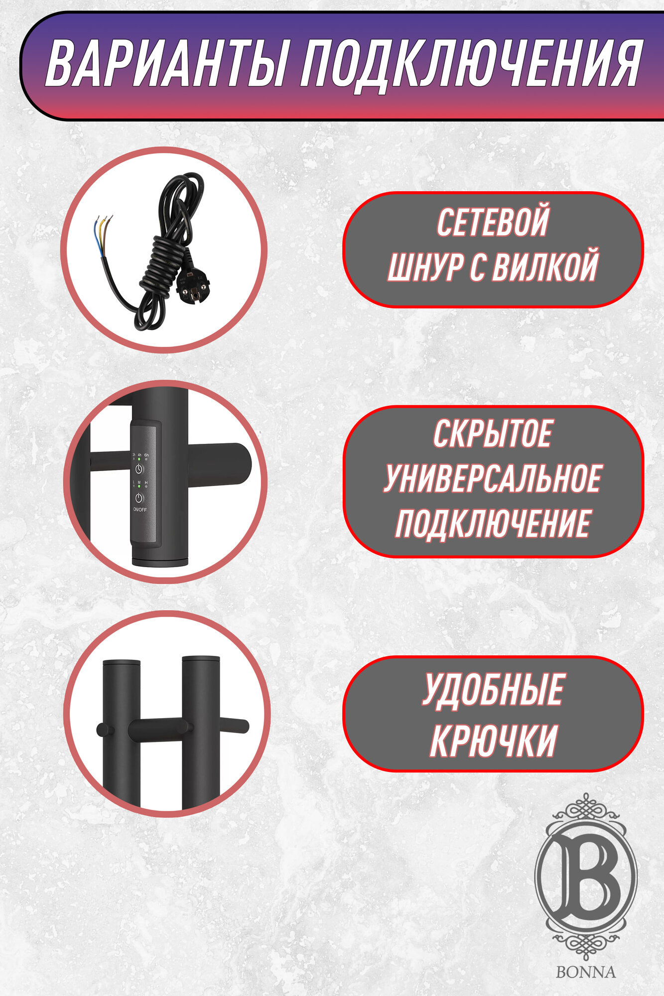 Купить Полотенцесушитель электрический Bonna Frea BN20722B П2 140×1200 диммер слева, черный с доставкой по всей России.