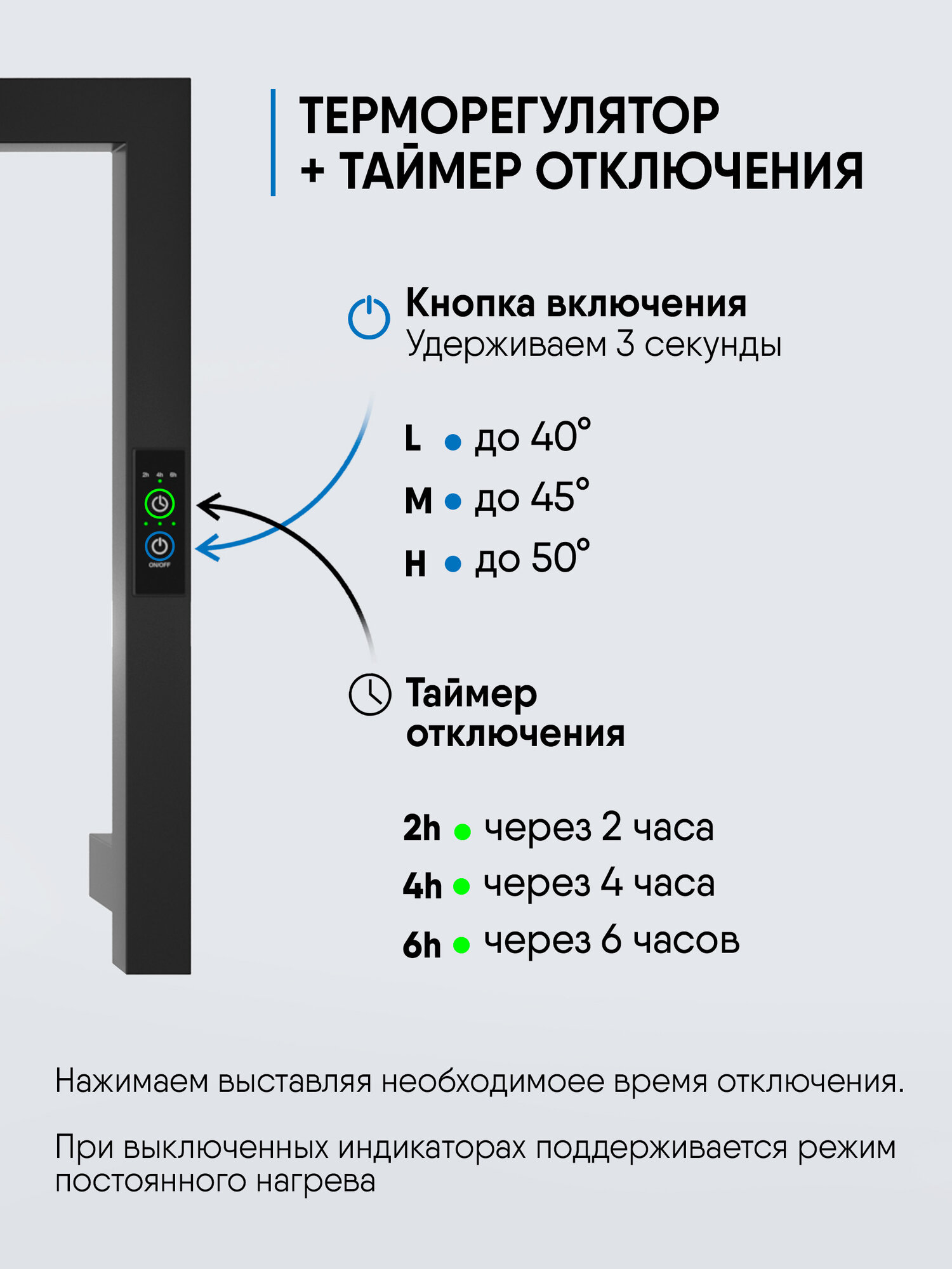 | Особенности | кнопка включения/выключения, с таймером, терморегулятор |