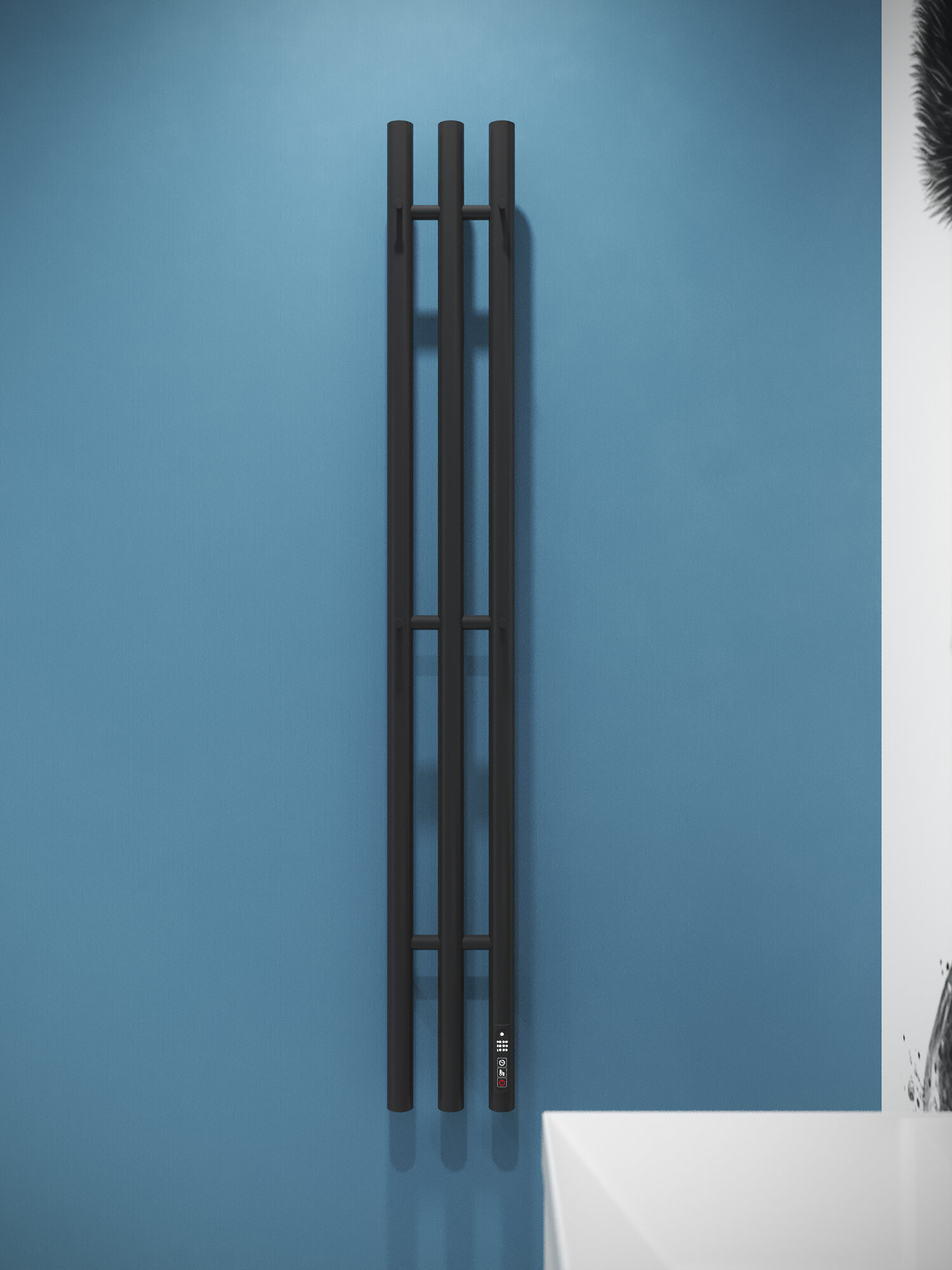 Купить Полотенцесушитель электрический черный EL-TERM (Эл-Терм) Эфес Трио 156х1200 мм, нержавеющая сталь с доставкой по всей России.