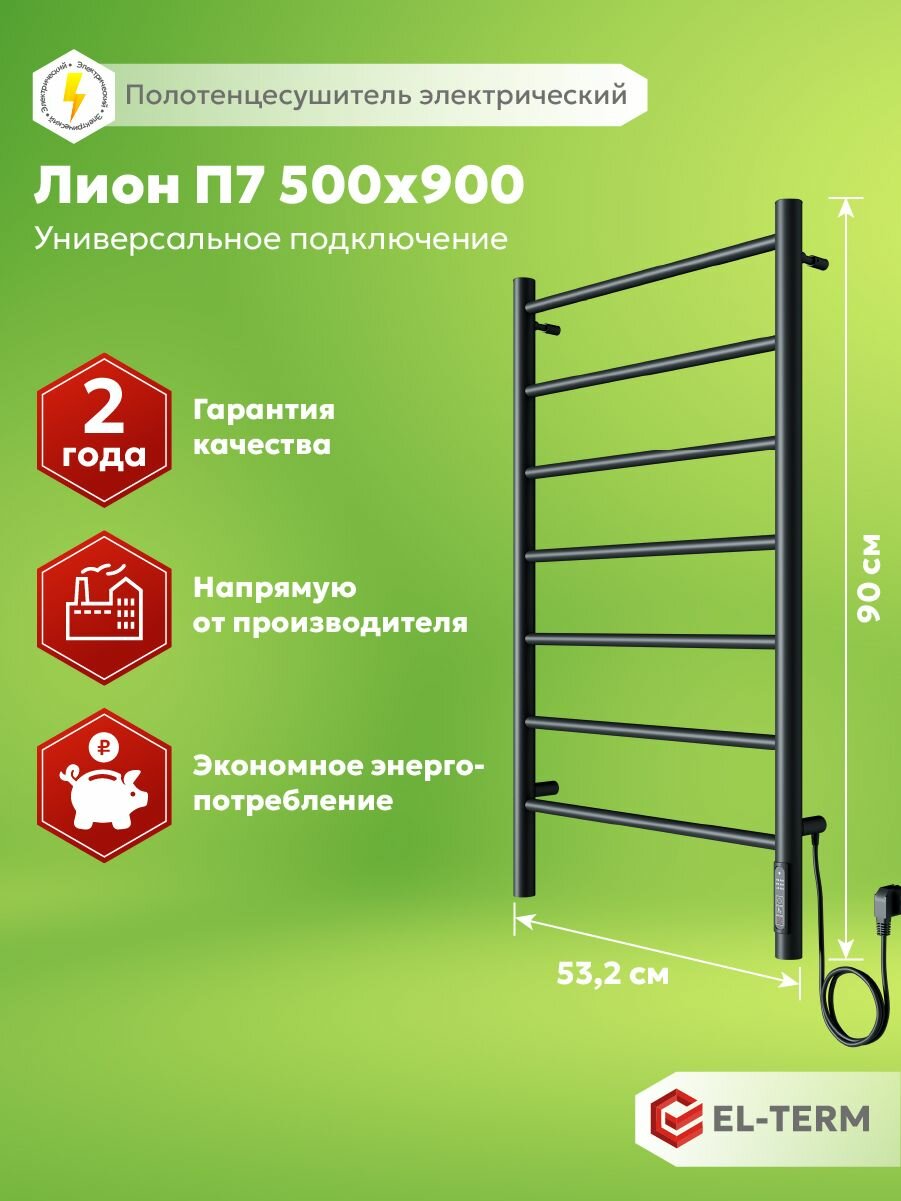 Полотенцесушитель электрический черный EL-TERM (Эл-Терм) лион 500х900 мм, нержавеющая сталь: сравнение цен, характеристики, фото, актуальное наличие и цены.