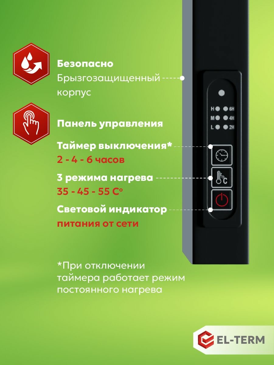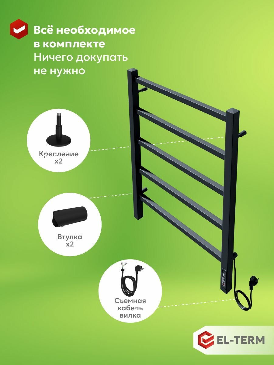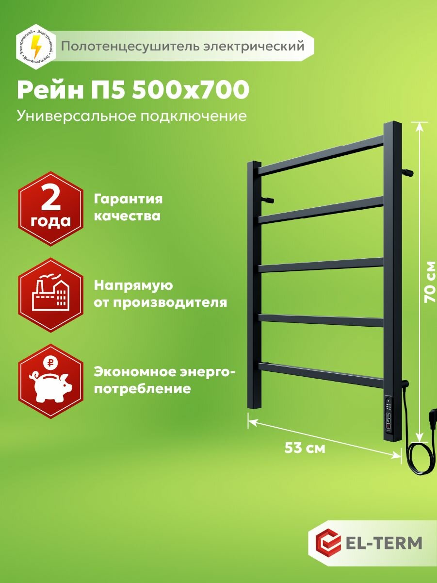 Полотенцесушитель электрический черный EL-TERM (Эл-Терм) рейн 500х700 мм, нержавеющая сталь: сравнение цен, характеристики, фото, актуальное наличие и цены.