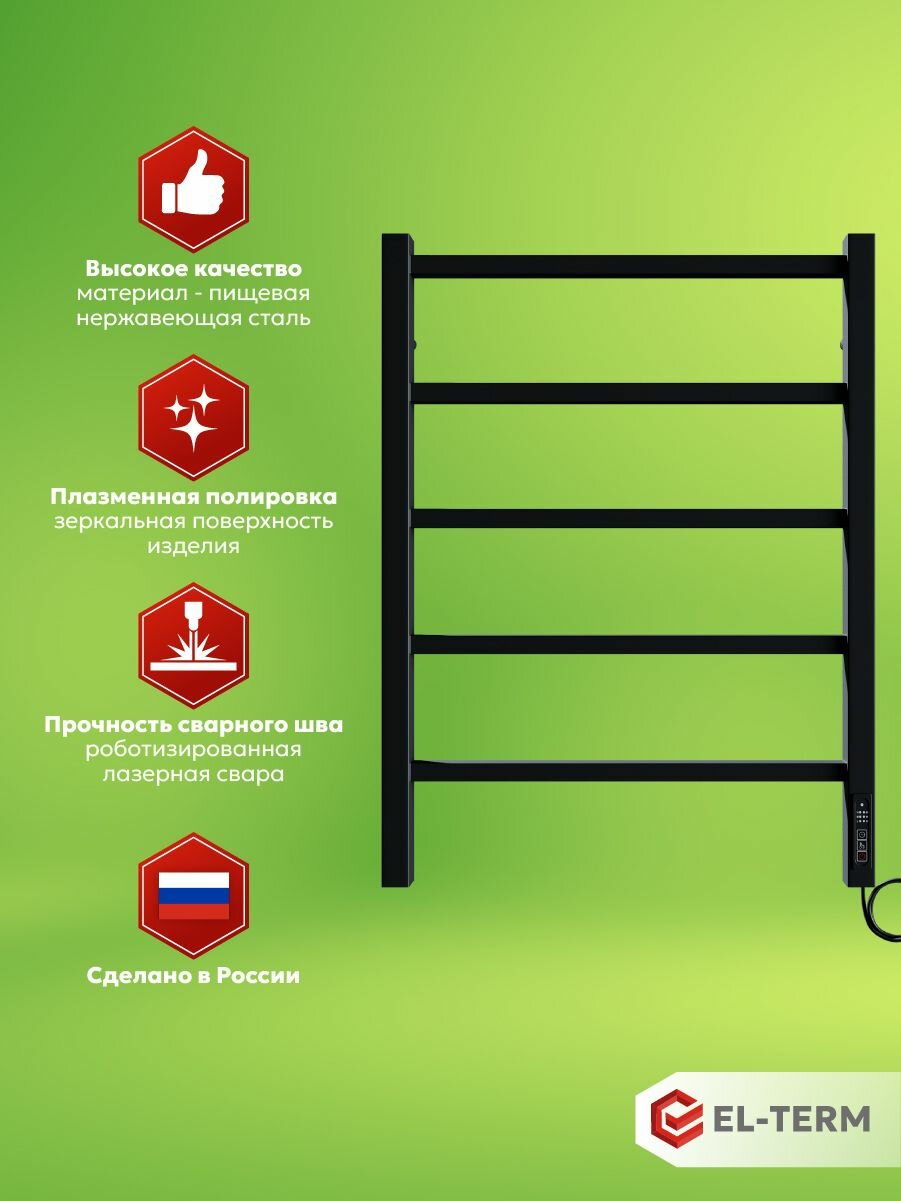 Купить Полотенцесушитель электрический черный EL-TERM (Эл-Терм) рейн 500х700 мм, нержавеющая сталь с доставкой по всей России.